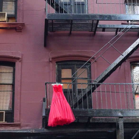 A neighbor prosecutes God and love from her 10th floor balcony.